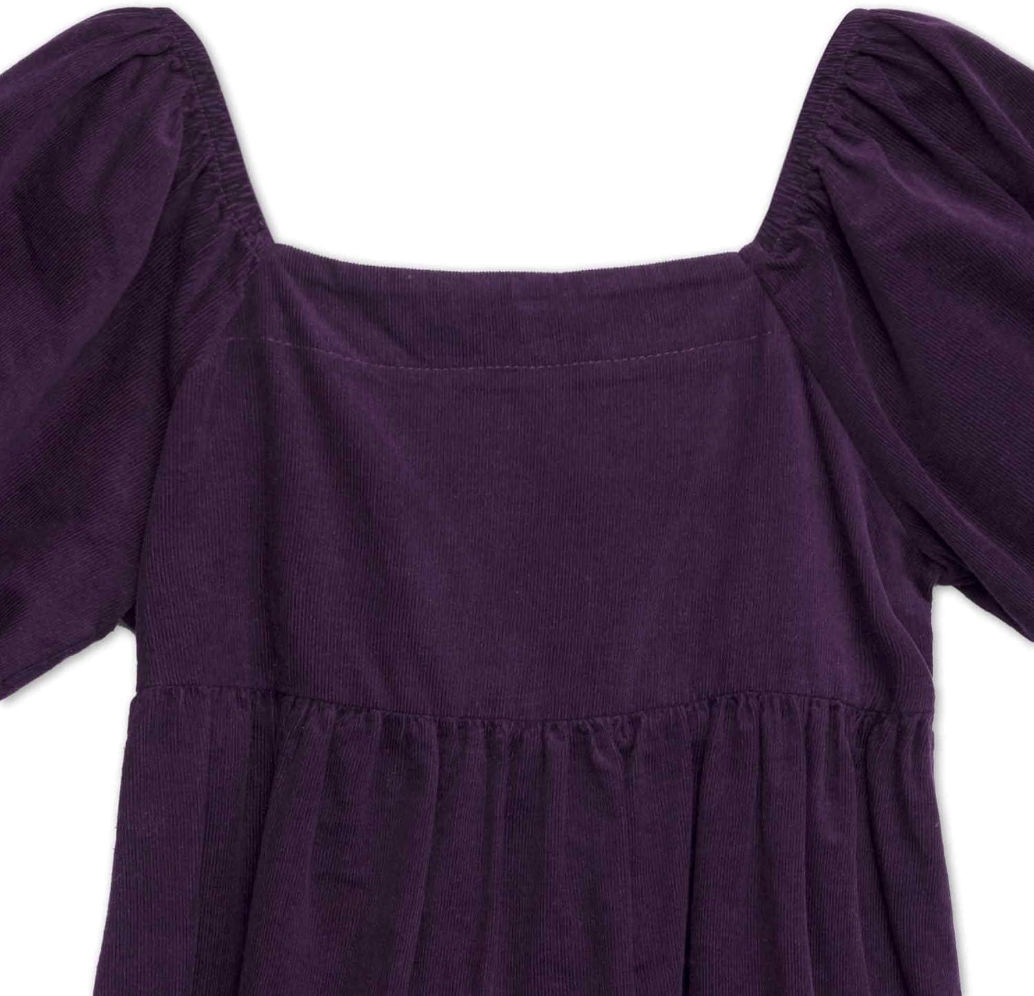 Speechless Girls' Corduroy Puff Sleeve Babydoll Dress(Eggplant)