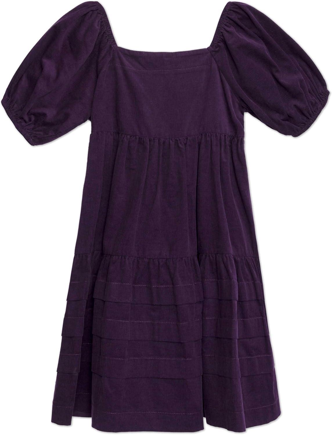 Speechless Girls’ Corduroy Puff Sleeve Babydoll Dress(Eggplant)