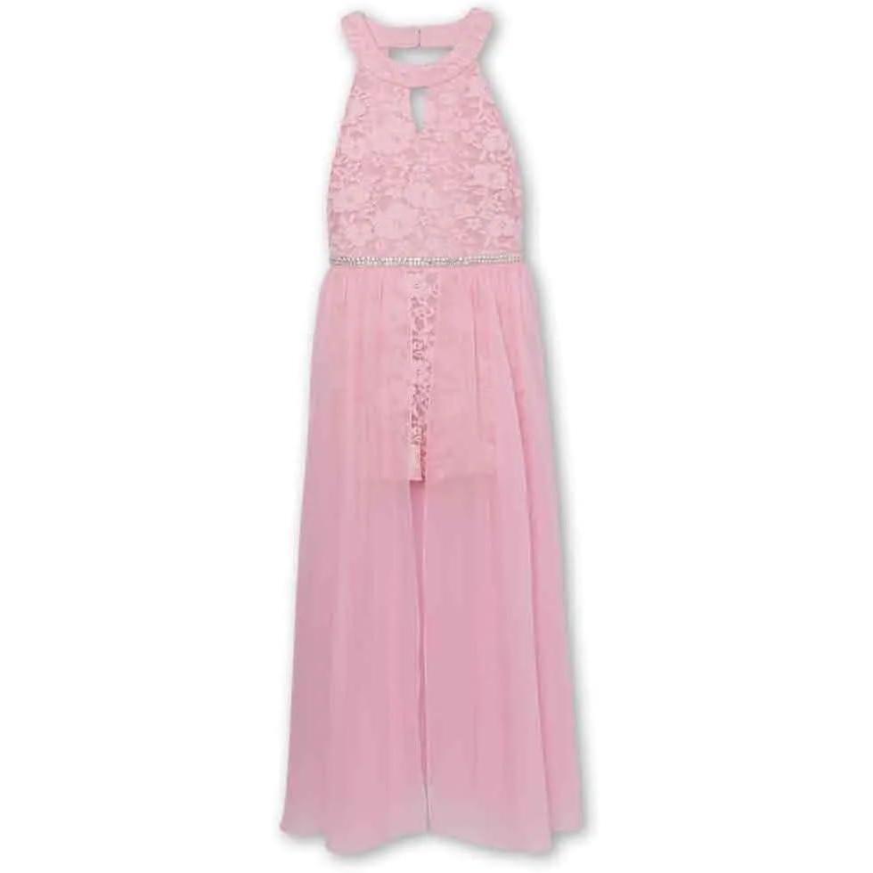 Speechless Girls’ High Neck Romper Maxi Walk-Through Party Dress(Lilac)