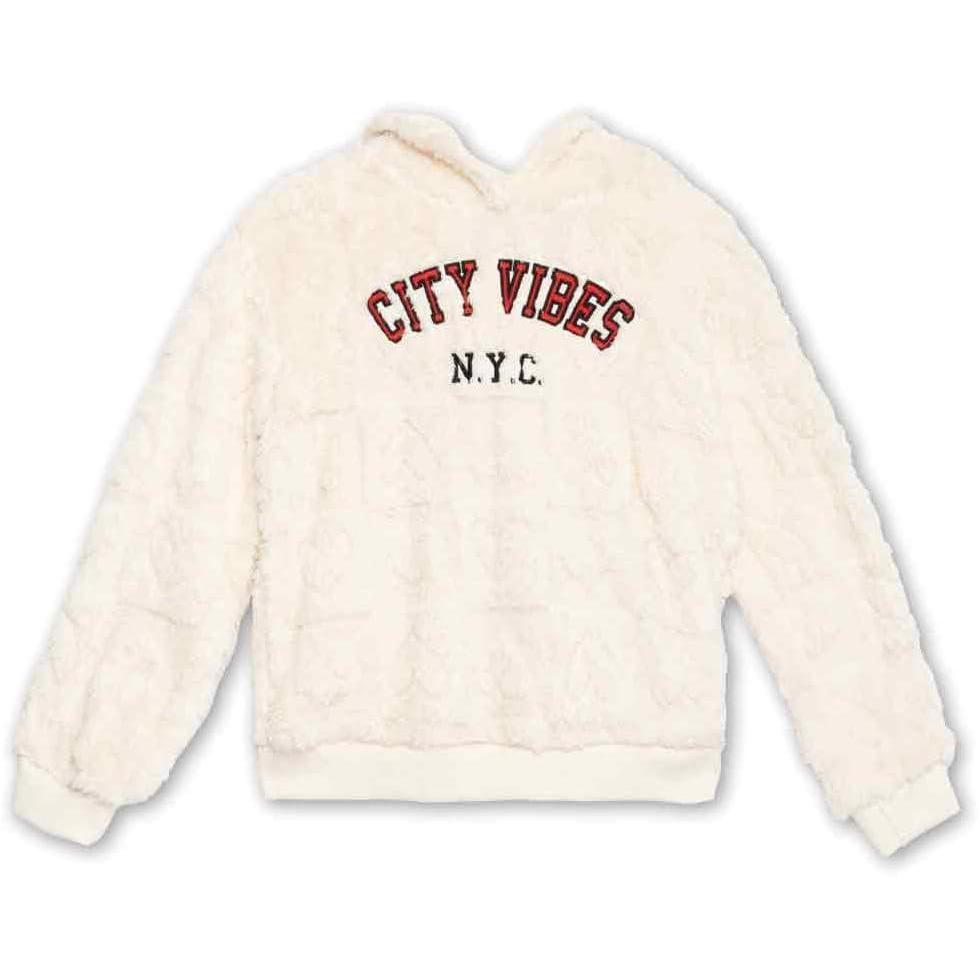 Speechless girls Long Sleeve Faux Fur Boxy Hoodie(Ivory)