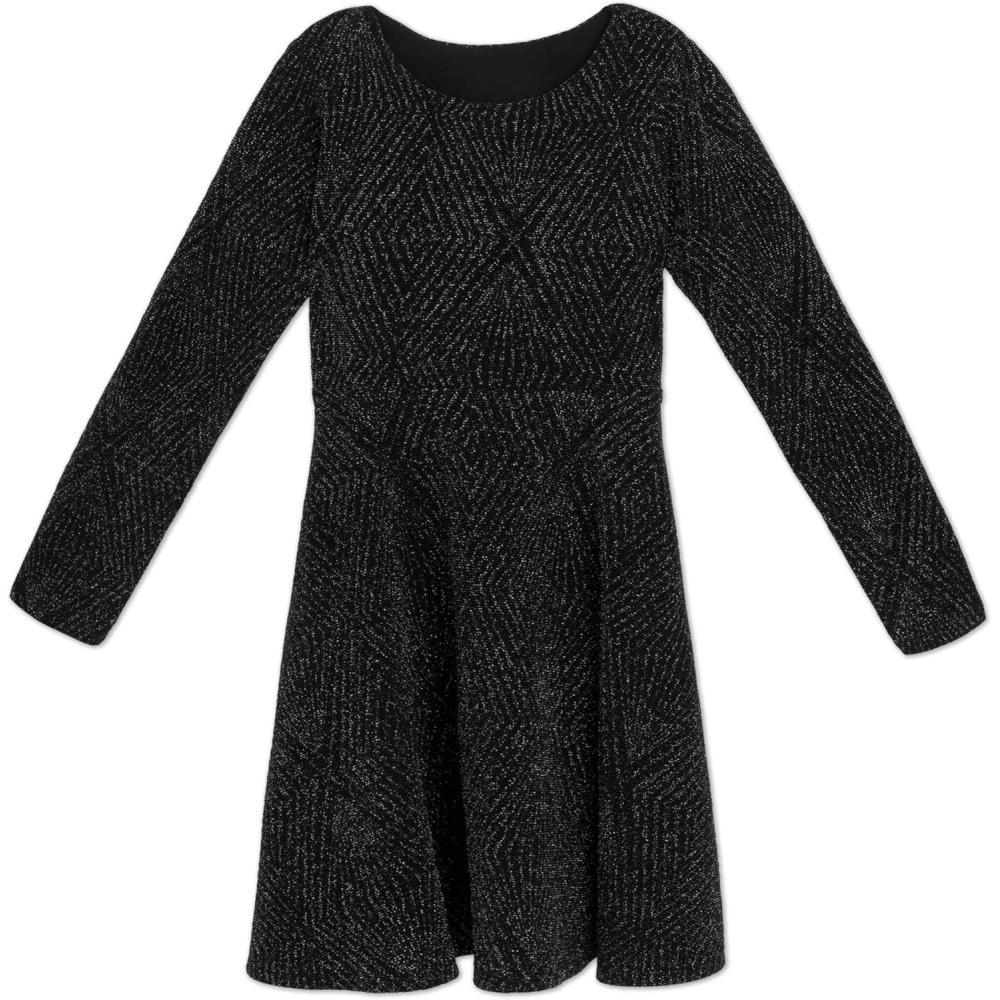 Speechless Girls’ Long Sleeve Lurex Knit Skater Party Dress(Black)