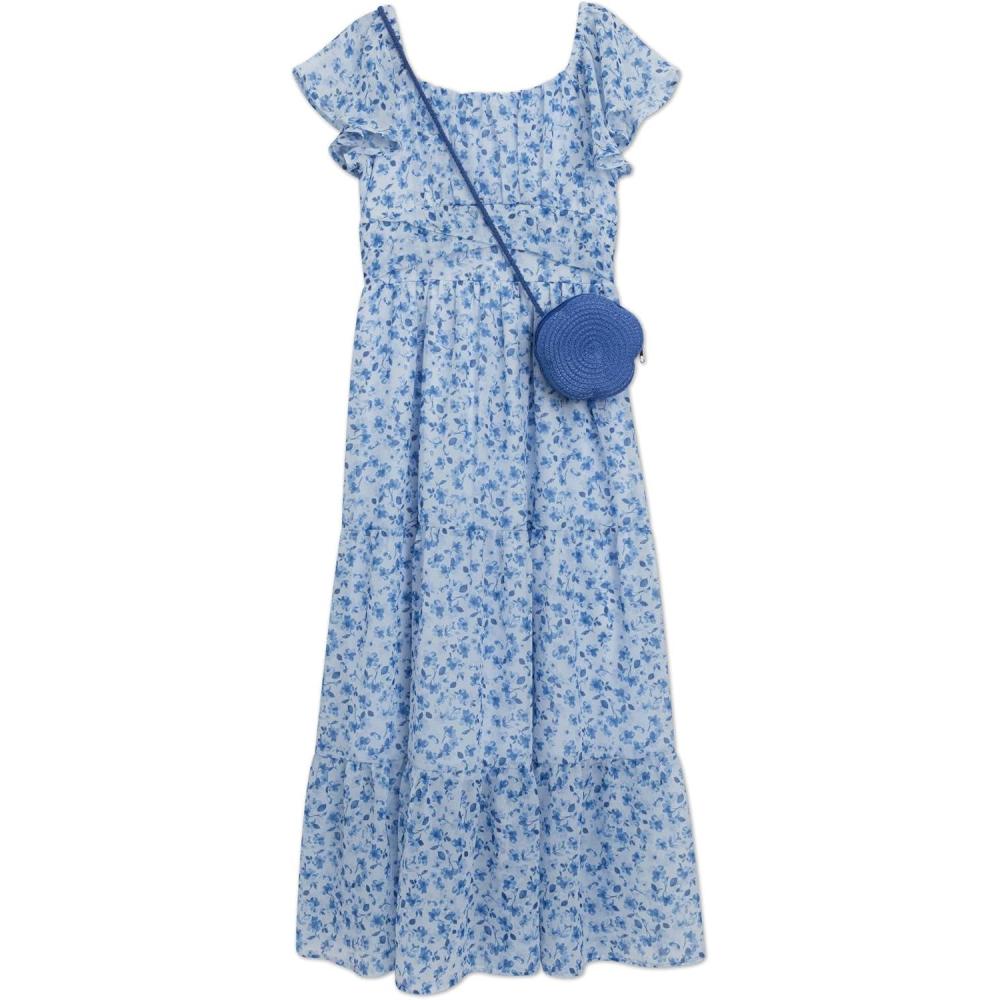 Speechless Girls’ Flutter Sleeve Chiffon Maxi Dress(Blushblue)