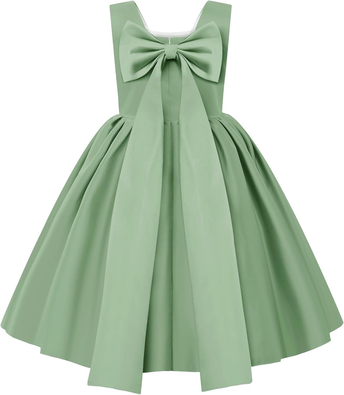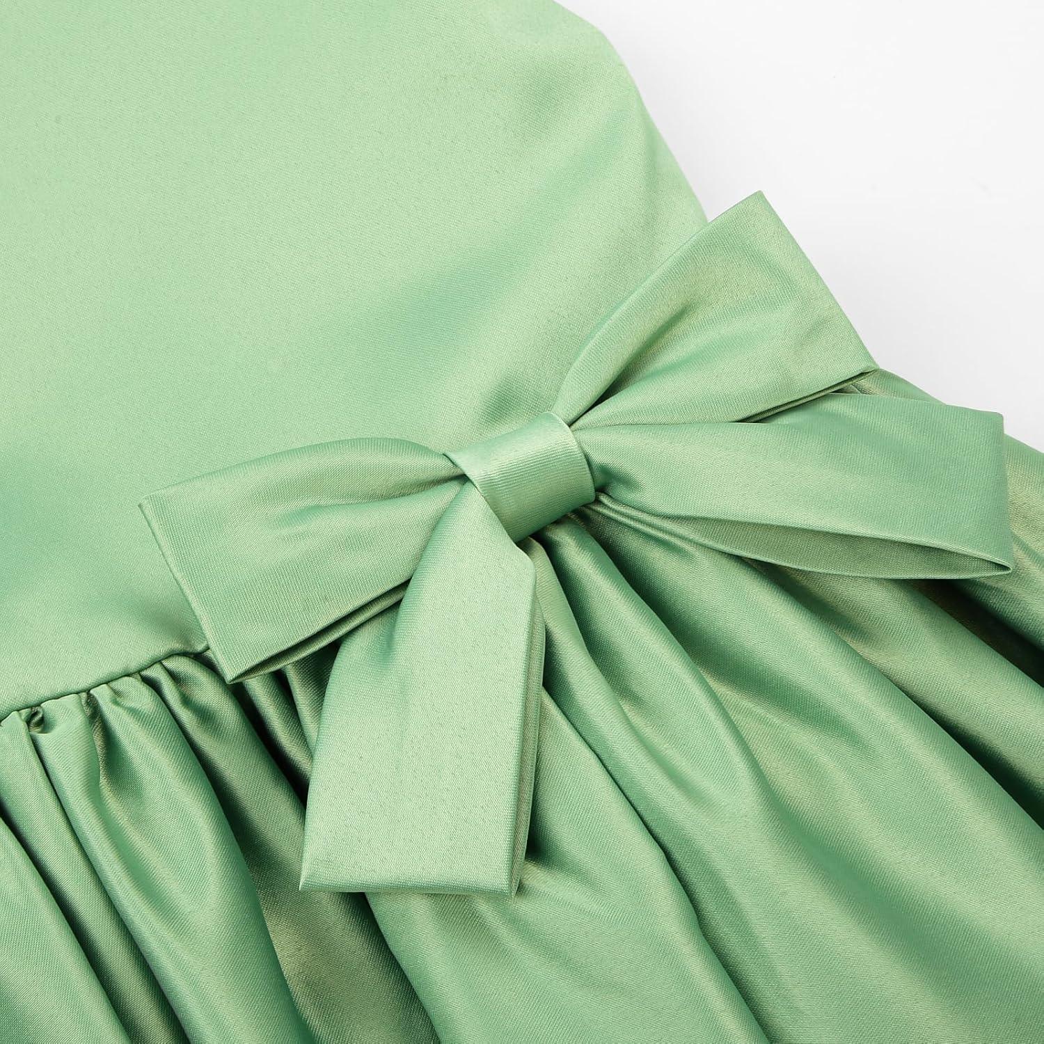 Uhnice Flower Girl Satin Dress Sleeveless Dresses with Detachable Bow for Wedding Party(Green)
